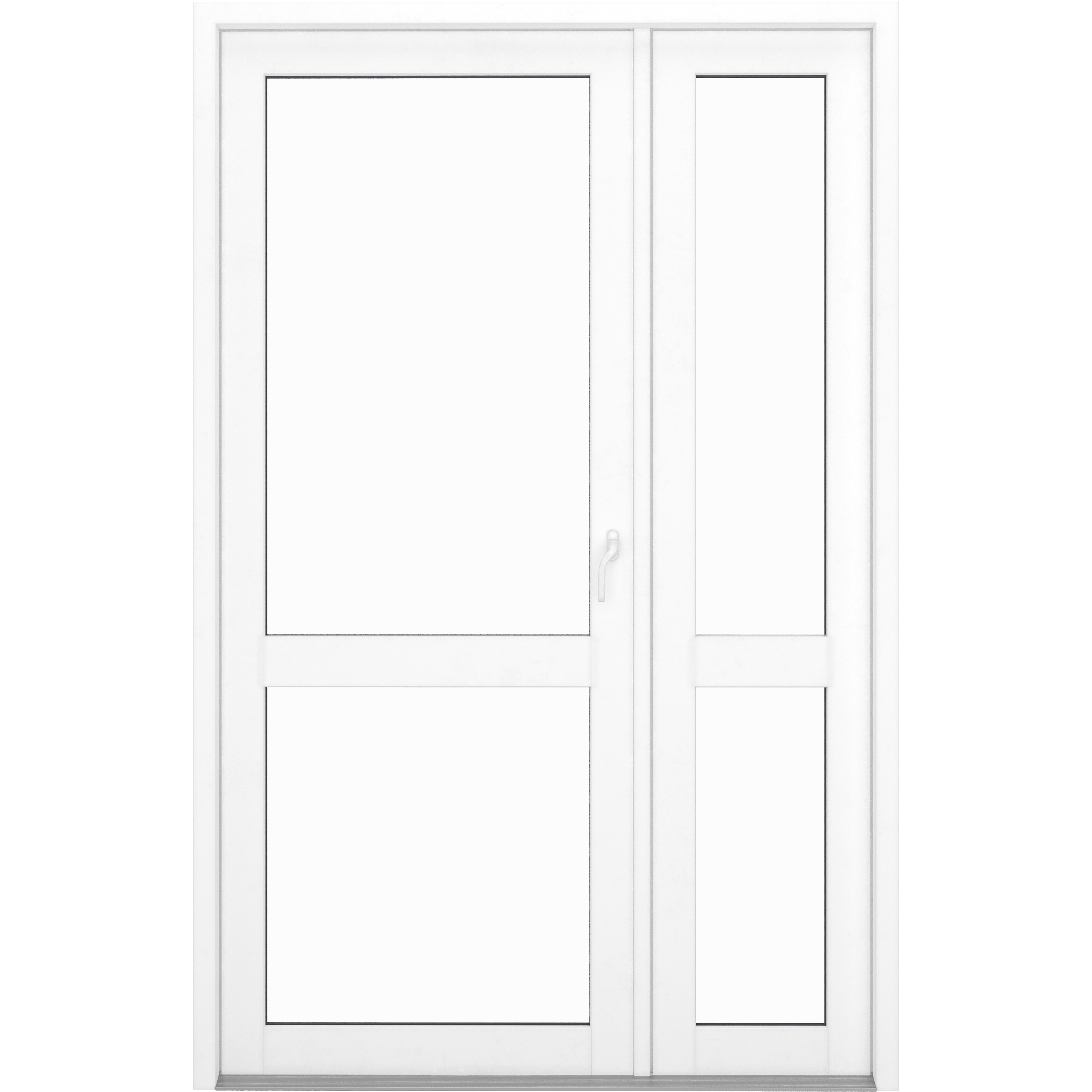 OBS: När du köper ett ytterdörrsparti är sidosektionen minst 32 cm bred och blir gradvis större beroende på bredden på hela ytterdörrspartiet. Detta måste beaktas i förhållande till dörröppningens bredd. Dessutom är sidopartiet alltid placerat på motsatt sida av dörrgångjärnen. Det vill säga gångjärnen är alltid i ramen mot väggen - inte åt sidan. Så du bestämmer på vilken sida ytterdörrspartiet är placerad när du väljer öppningsriktning. En höger utåtvänd dörr kommer till exempel att ha sidodelen på vänster sida sett från utsidan.