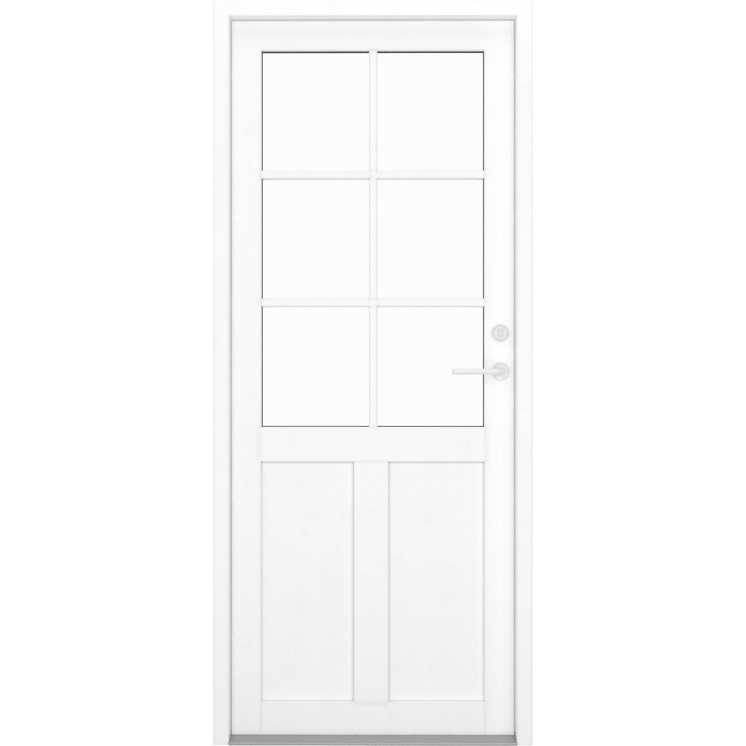 Upptäck vår storslagna ytterdörrmodell 2 fyllningar 6 rutor i en tidlös vit nyans, perfekt för att ge ditt hem en fräsch och modern karaktär. Den eleganta kombinationen av stil och säkerhet gör denna dörr till det ideala valet för den som värdesätter både estetik och trygghet. Den vita färgen reflekterar ljus och skapar en ljus och inbjudande atmosfär vid din entré, samtidigt som den smidigt passar in i alla typer av husstilar. Med alternativ för både dubbelglas och trippelglas säkerställer vi att din dörr inte bara är vacker utan även erbjuder förstklassig isolering och energieffektivitet, vilket hjälper dig att spara på energikostnaderna. Ge ditt hem en stilfull uppgradering och njut av tryggheten med våra högkvalitativa, vitlackerade yttersidor som kombinerar funktionalitet med en oemotståndlig design!