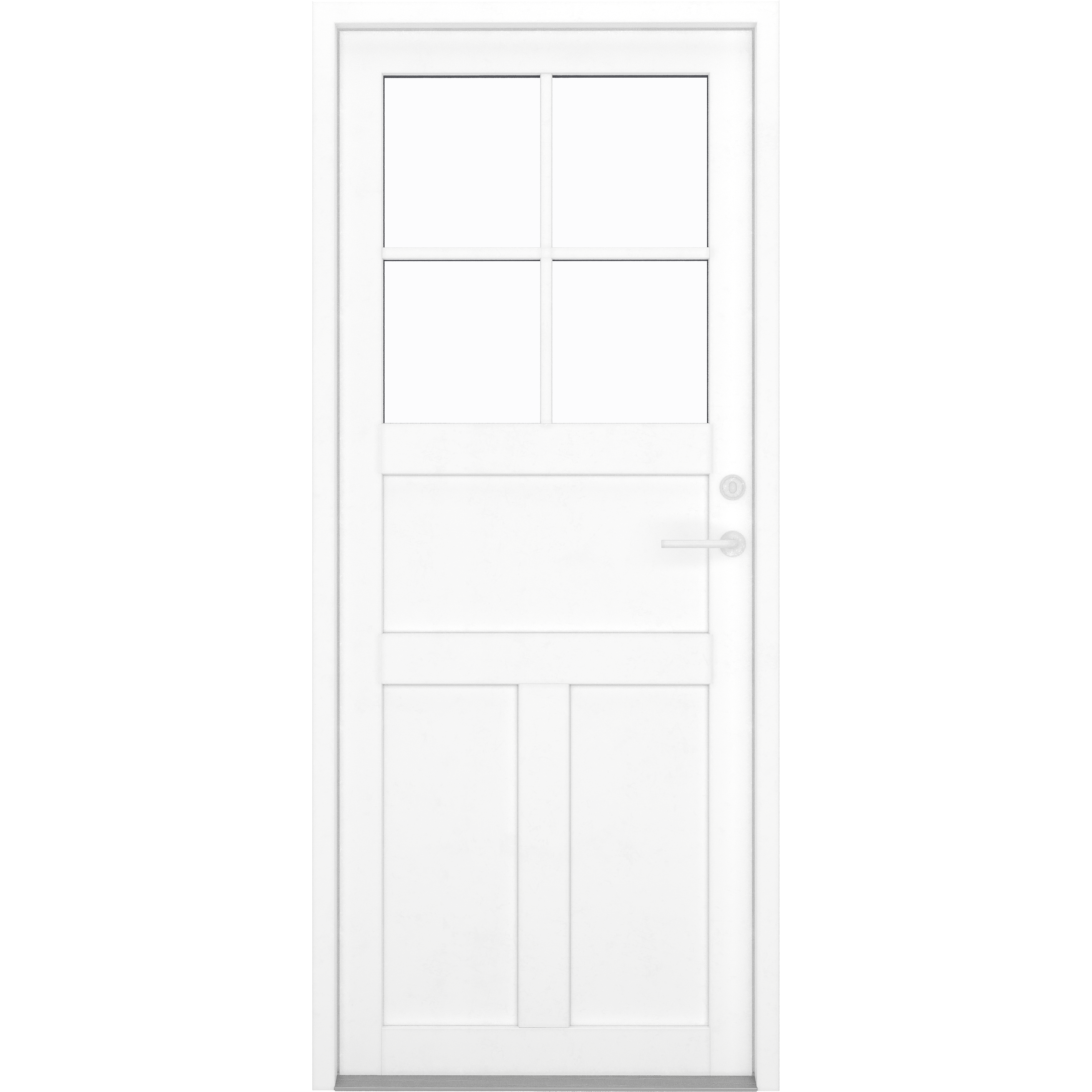 Upptäck den perfekta kombinationen av stil och funktionalitet med våra ytterdörrar - 3 fyllningar 4 rutor i vit färg. Denna eleganta dörrmodell är inte bara en vacker välkomnande entré till ditt hem, utan även en pålitlig skyddande barriär. Med sitt moderna och tidlösa utseende passar den utmärkt i alla typer av hem. Den vita kulören ger ett fräscht och ljust intryck, vilket förstärker ditt hems design och skapar en inbjudande atmosfär. Våra ytterdörrar är konstruerade med högkvalitativa material och erbjuder både dubbel- och trippelglas, vilket säkerställer en god isolering och energibesparing. Välj våra eleganta ytterdörrar för en trygg och stilren entré som imponerar på alla besökare!