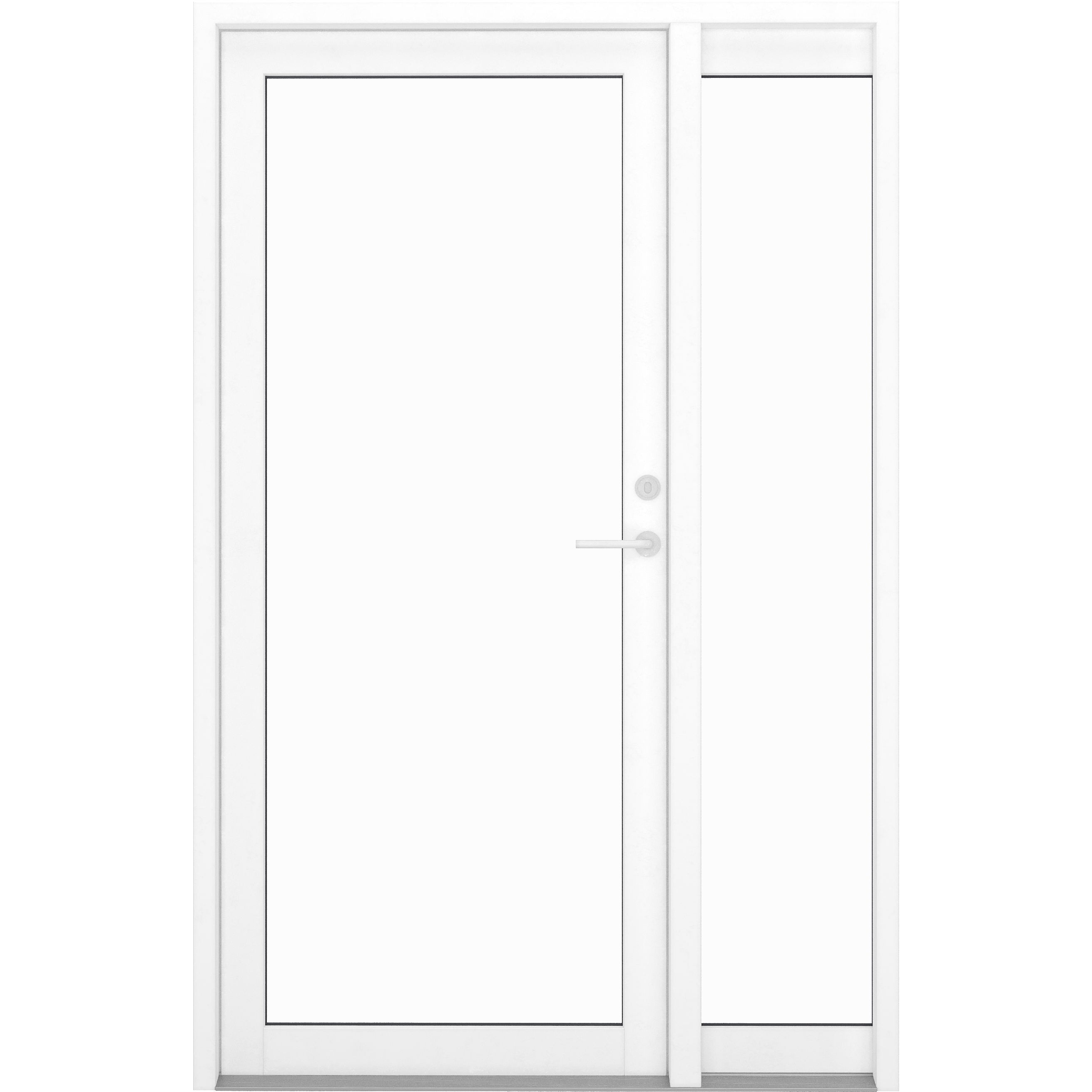 OBS: När du köper ett ytterdörrsparti är sidosektionen minst 32 cm bred och blir gradvis större beroende på bredden på hela ytterdörrspartiet. Detta måste beaktas i förhållande till dörröppningens bredd. Dessutom är sidopartiet alltid placerat på motsatt sida av dörrgångjärnen. Det vill säga gångjärnen är alltid i ramen mot väggen - inte åt sidan. Så du bestämmer på vilken sida ytterdörrspartiet är placerad när du väljer öppningsriktning. En höger utåtvänd dörr kommer till exempel att ha sidodelen på vänster sida sett från utsidan.